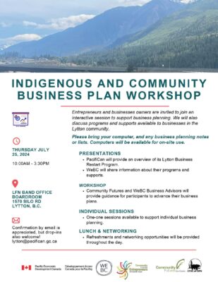 Join WeBC Business Advisor, Kelly Masson, in Lytton on July 25 for an interactive session to support business planning and explore programs and support systems available to the community.