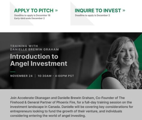 Join Accelerate Okanagan and Danielle Brewin Graham, Co-founder of The Firehood & General Partner of Phenoix Fire, for a full-day training session on the investment landscape in Canada. This uniquely elevated pitch program guides Okanagan-based investors and Western Canadian startups through the capital-raising process as part of a Dragon’s Den-style selection process culminating in a public Grand Finale. On March 16th 2023, the last company standing will be awarded an investment fund of up to $250,000, the largest cheque-size in the program’s history.