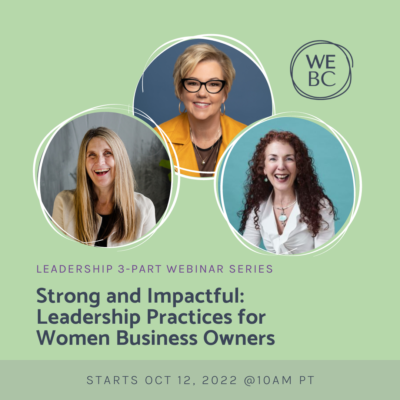 Entrepreneurship and leadership go hand in hand. Your impact is the result of the big and small actions you take every day in your life and business, so WeBC is delighted to present this new webinar series: “Strong and Impactful: Leadership Practices for Women Business Owners.”
