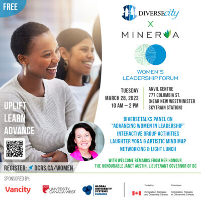 Minerva BC et DIVERSEcity Community Resources Society organisent un forum sur le leadership des femmes le mardi 28 mars, de 10h à 14h, au Anvil Centre à New Westminster (près de la station de Skytrain de New Westminster).