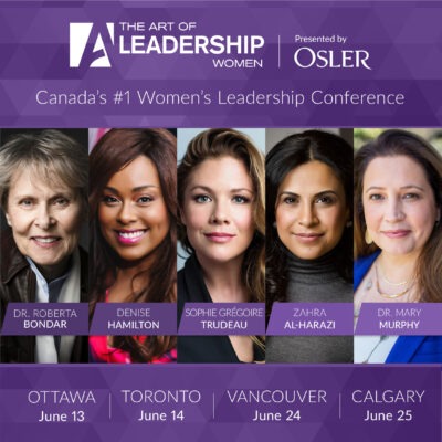 The Art of Leadership Women is returning to Vancouver on June 24.  This unique one-day conference features an incredible collection of renowned world leaders, business icons, esteemed academics, and bestselling authors who share strategies and insights on the most critical challenges facing leaders in our world today.