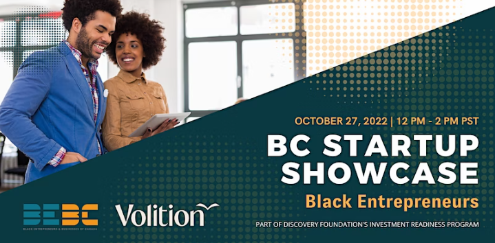WebinarJoin us to cheer on six Black entrepreneurs from across BC when they take the virtual stage to pitch their startup. About this event Throughout 2022, Volition is delivering Discovery Foundation's Regional Investor Readiness Program, offering entrepreneurs across B.C. an opportunity to rise and thrive with free startup business advising, pitch masterclasses, and Startup Showcases. Our October […]