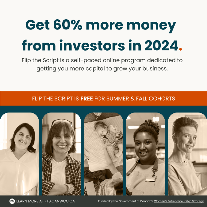 We’ve partnered with the Canadian Women’s Chamber of Commerce for Flip the Script, a FREE online program that teaches entrepreneurs a communication style that's been proven to get 60% more money from investors. Apply for the program if you're ready to: Stop missing opportunities because you don’t have enough capital Stop struggling to make investors […]
