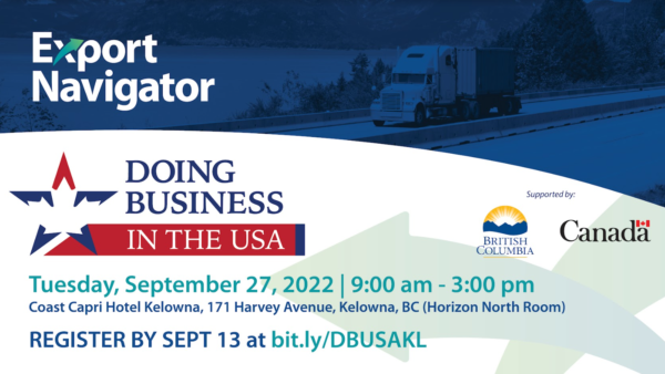 Présenté par Export Navigator, Faire des affaires aux États-Unis (DBUSA) est un séminaire destiné à aider les propriétaires d’entreprises canadiennes à pénétrer le marché américain. L’un des principaux atouts commerciaux de Kelowna est sa proximité avec la frontière américaine. Cependant, le franchissement des frontières par des marchandises commerciales est confronté à des complexités et à des réglementations en constante évolution. Accédez à un panel d’avocats locaux spécialisés dans l’immigration et les affaires transfrontalières, de fiscalistes, de courtiers en douane et de professionnels de la logistique soigneusement sélectionnés.